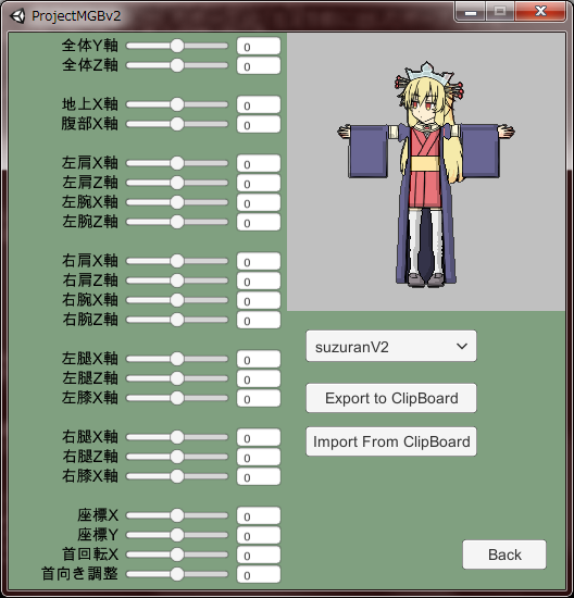 左に大量のスライダー。項目名からして、これでポーズを作っていくのだな。