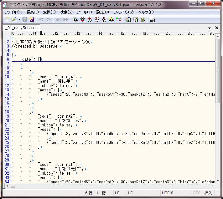 次回、このJsonデータを用いてモーションデータを追加する方法について解説するよ。